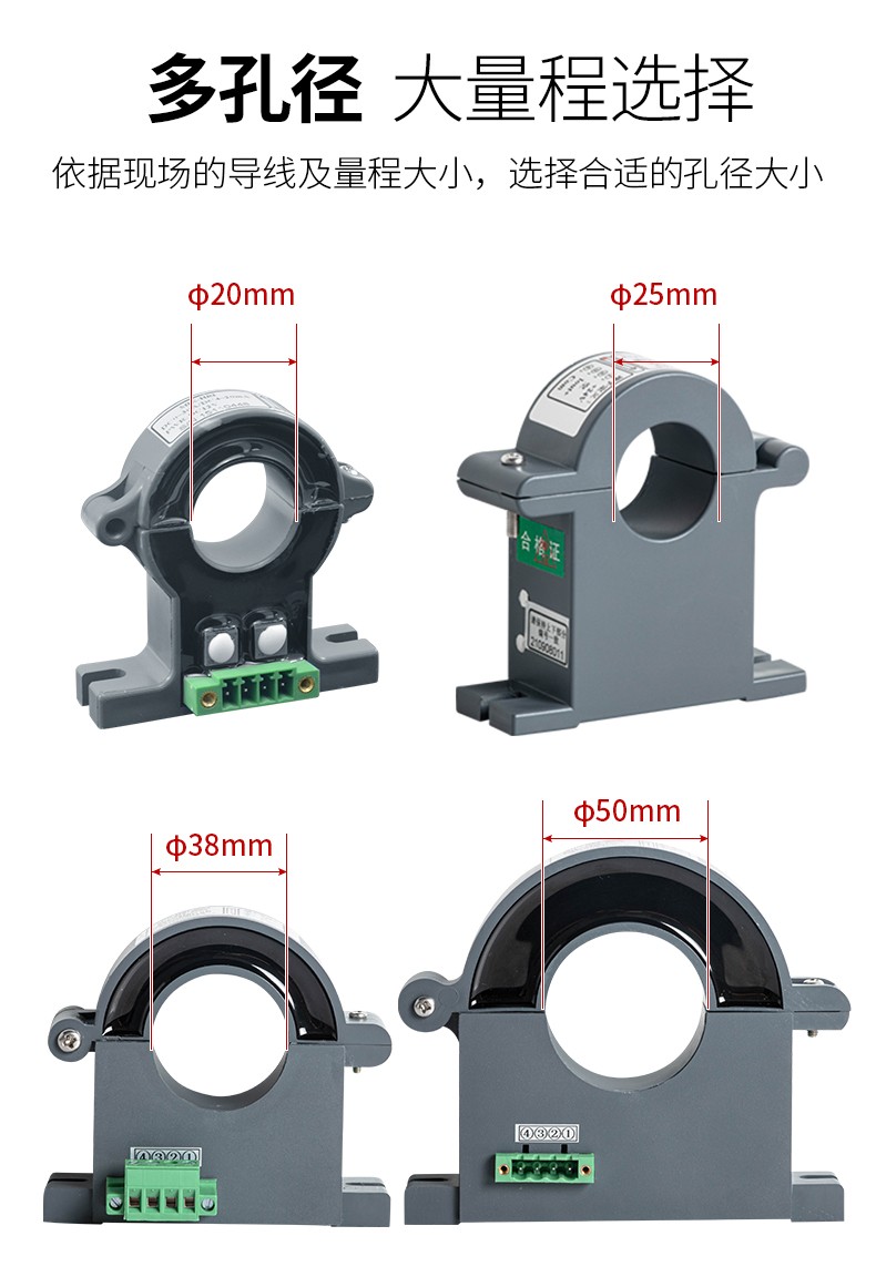 开合式霍尔电流变送器是应用闭环零磁通磁平衡式原理,用于测量直流﹑交流电流,精度高,线性度好,反应快,低温漂,频带宽, 抗干扰能力强,无插入损耗,多数应用在变频调速系统,电焊机,电化学,电源监控,电力机车,数控机床等场合。