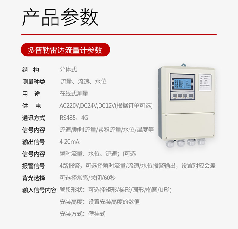 多普勒雷达流量计、宽量程、非接触测量、污雨水管网、河道流量、水渠流量