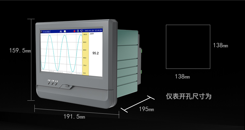 本产品为工业无纸记录仪,配置 3.5 英寸 TFT 真彩全视角液晶显示屏。