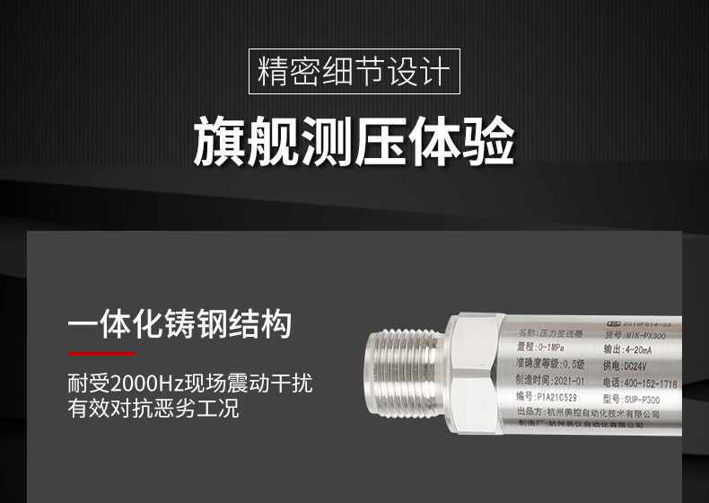 MIK-P400型工业型压力变送器采用全焊接压力芯体,微型放大器处理电路......